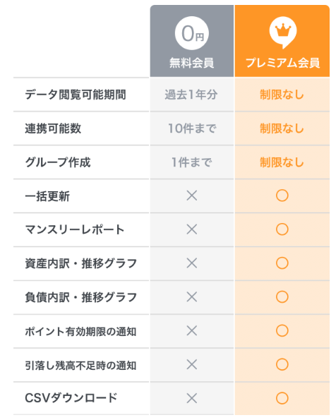 私はマネーフォワードのプレミアムサービスに加入しています。無料でも使えるのですが、色々制限もありますし、月々たったの500円で家庭の収支を見える化かできるのでプレミアムプランがおすすめです。